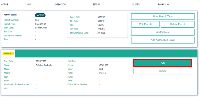 Step 5: Edit the Vehicle information as needed (Year, Make, Model, State, Plate, Color, etc.) and click on Save Changes at the bottom of the page.