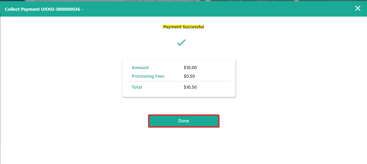 Step 5: Make sure the payment was processed correctly in the Collect Payment view, click Done