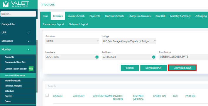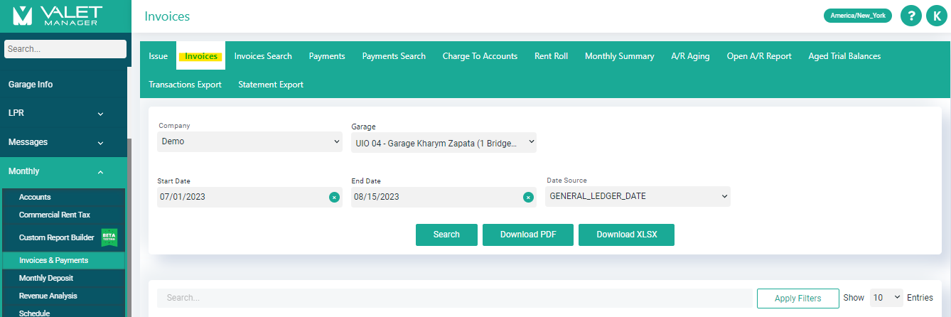 Step 1: Click on Monthly >> Invoices & Payments from the left side menu of the screen