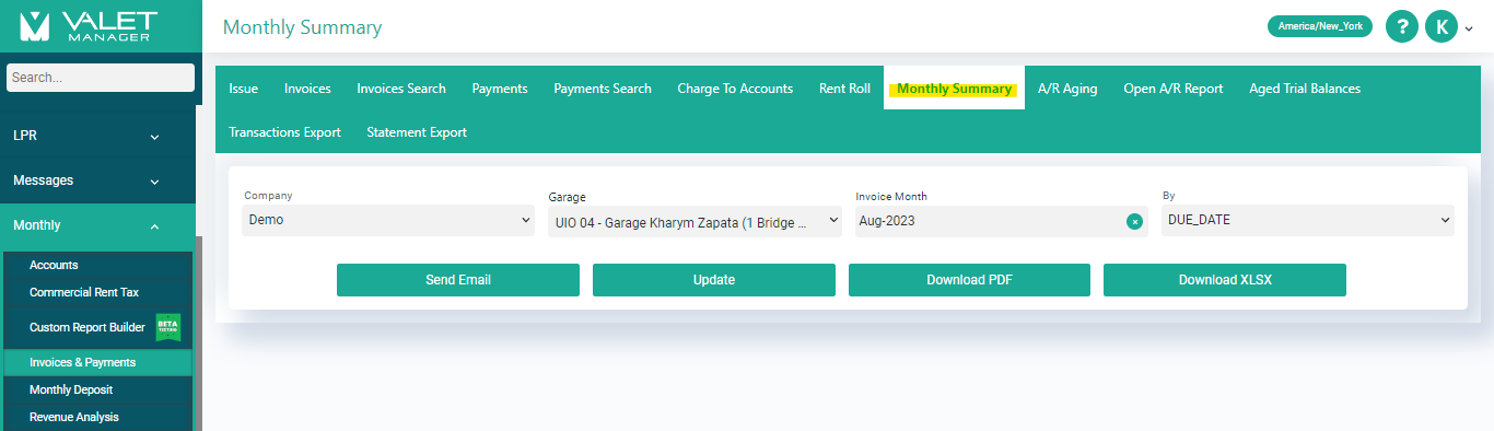 Step 1: Click on Monthly >> Invoices & Payments from the left side menu of the screen