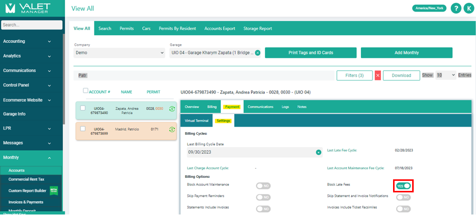 Step 4: Make the toggle "Block Late Fees" as YES.