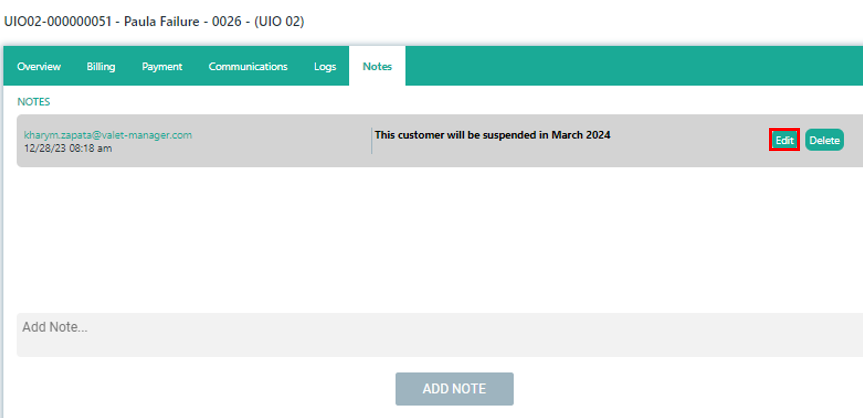 Step 4: Make the changes to the Note as needed and click on Edit Note